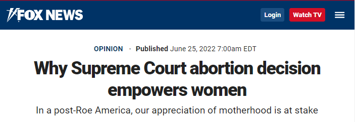 在当地时间6月25日发布的题为《为什么最高法院对堕胎权的裁决赋予女性以力量》的评论文章中称,最高法院此次的裁决并不仅仅是重建一条法律,而是重建美国对“母性”的民族观念。一个“后罗时代(post-Roe)”的美国,将是一个保护尚未出生的孩子们的国家,将是一个赋予这些孩子的母亲们以力量的国家。”文章批判支持堕胎合法化的群体无法解释美国对未出生胎儿的保护几乎弱于全世界任何一个国家这一事实,“他们只能给出‘生命并不一定都珍贵’这样让人难以忍受的立场”。报道还援引一项调查结果说明,超过75%的有堕胎经历的女性坦言如果曾获得外界的支持,或许不会选择堕胎。该文章总结提出,在当下,美国民众们应与怀孕的女性们站在一起,保障她们每个人都拥有足够的资源去孕育和生产。
